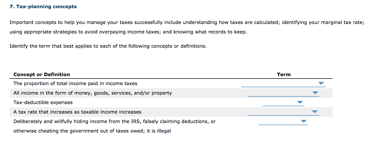 Solved 7 Tax Planning Concepts Important Concepts To Help Chegg Com